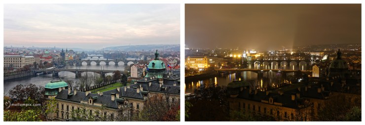 Here is one overlooking the three bridges in Prague at two different times of day.